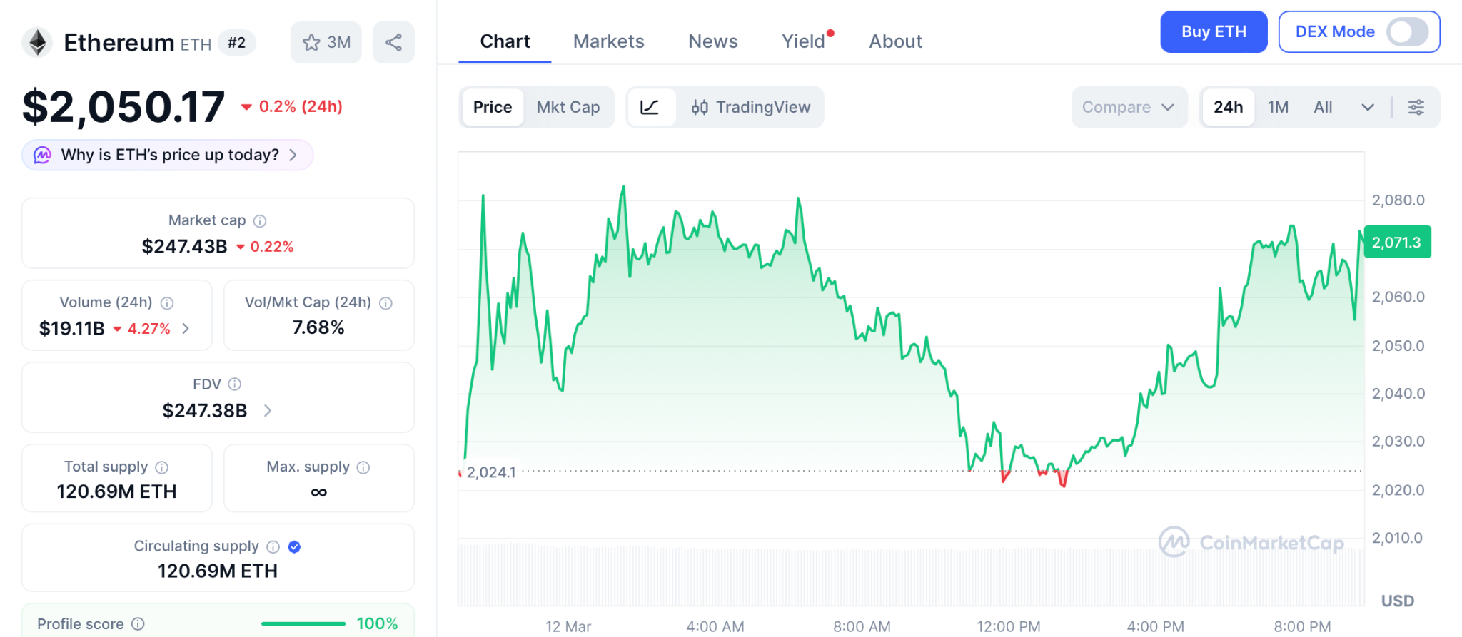 據CoinMarketCap數據,以太坊(ETH)現報2050美元,日漲2.5%,周漲4.3%。分析師Merlijn The Trader指出,以太坊已進入「折扣區」,與2023年引發4倍漲勢的走勢圖模式相似。若歷史重演,2026年底以太坊價格預測將達9500美元。